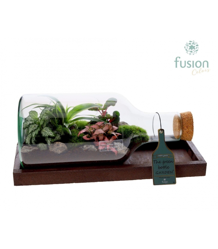 Green Bottle Fles Small liggend with Green plants